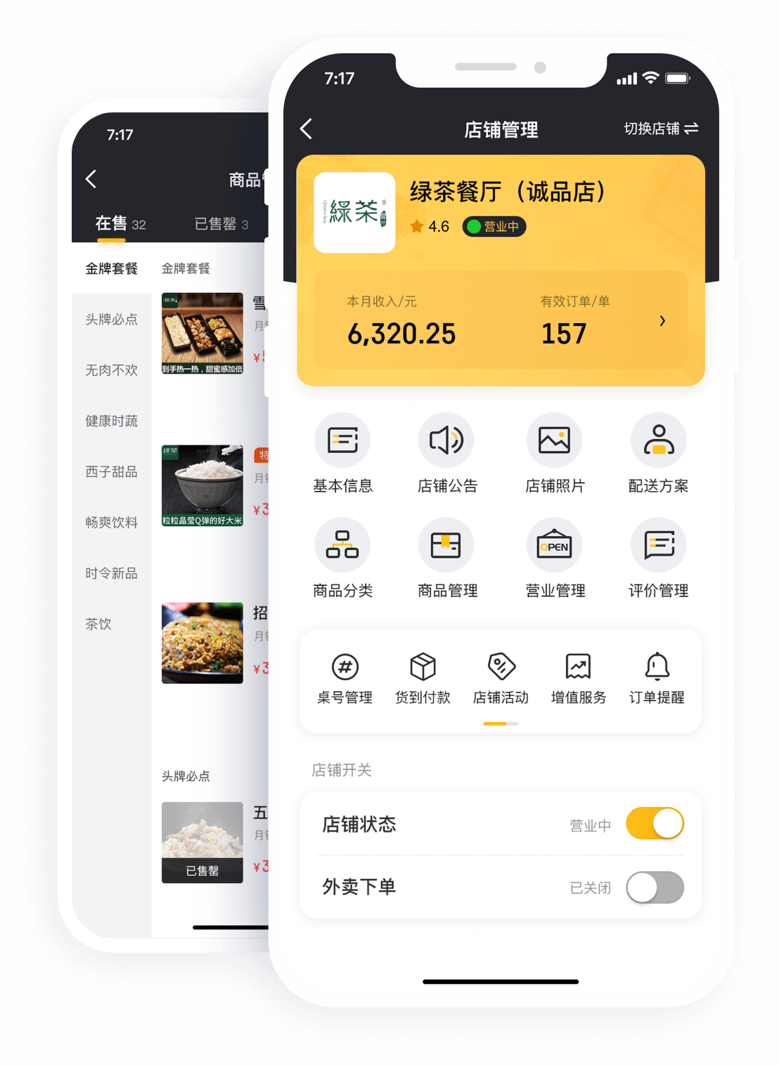 按营业时间自动开关店,快捷方便的商品管理,随意设定配送范围